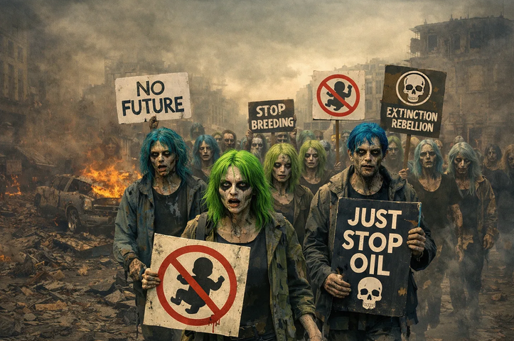 We speak here of the septum-led, intersectionalized martyrs/baristas who look upon the struggles of their ancestors – generation after generation scratching in the mud, desperately eking out a meagre existence, only to be ravaged by plague and famine or slaughtered in trenches, their kin perishing for want of medicine or basic hygiene, braving superstition and natural disaster alike for millennia upon miserable millennia, yet driven by the fire of life to survive, to raise and nurture their offspring, standing guard against the dying of the light, yearning to pass along the genetic torch, flickering in the harsh winds of history – all so the ze/zer cipher serving your morning coffee can rage quit the future of life on earth in a righteous eye roll of imagined indignation because, “Uh, I can’t even…”
